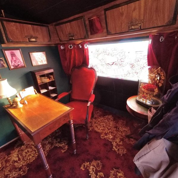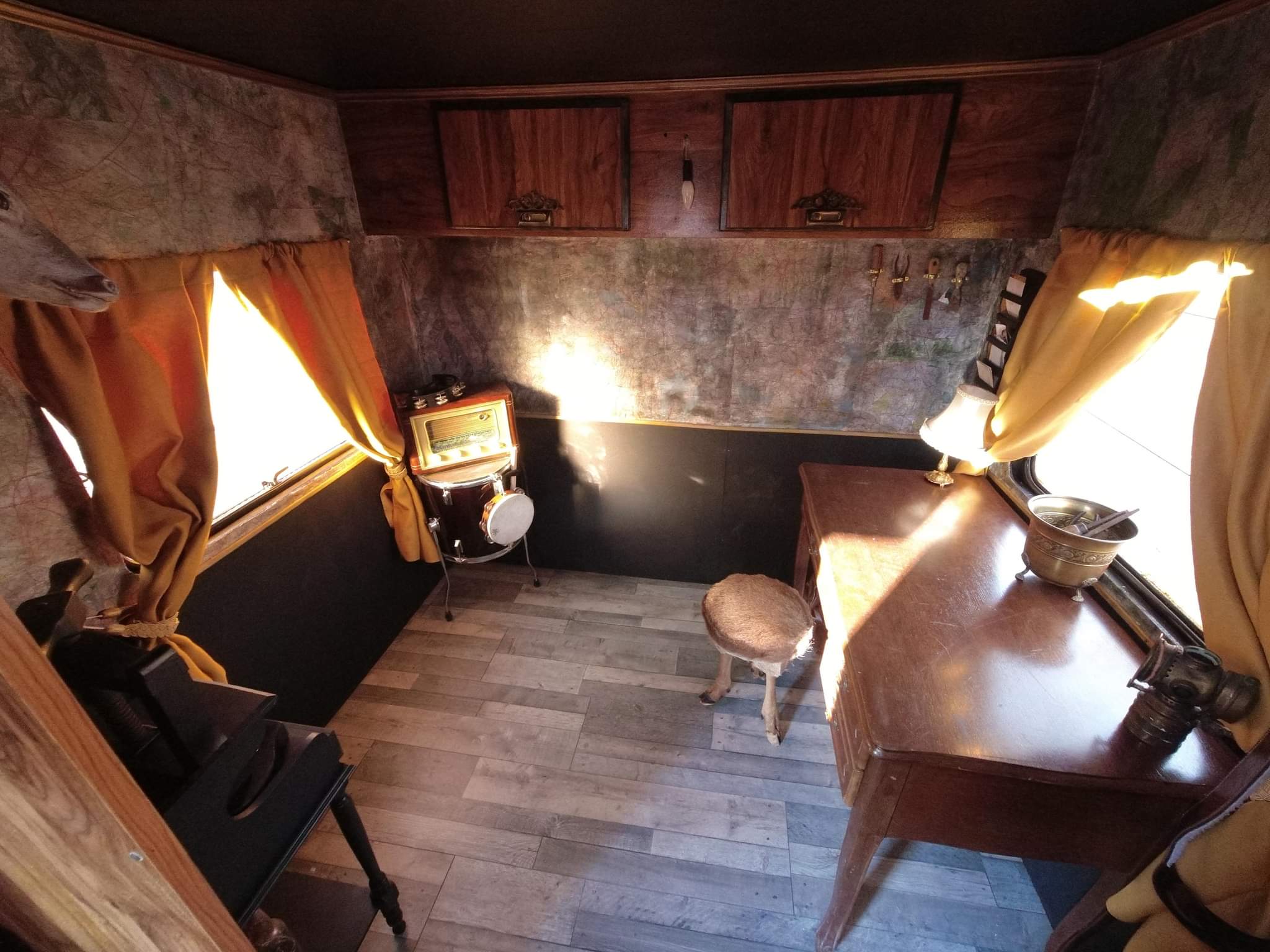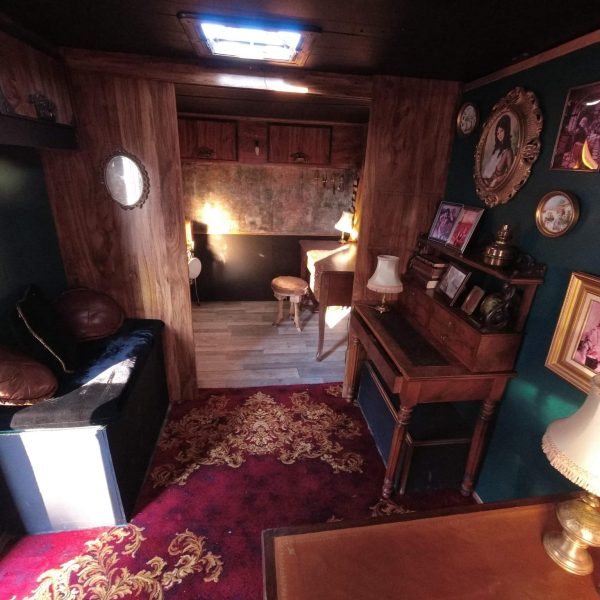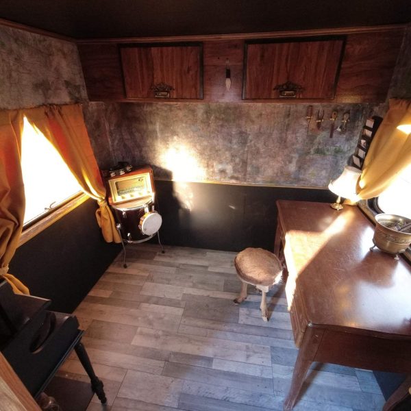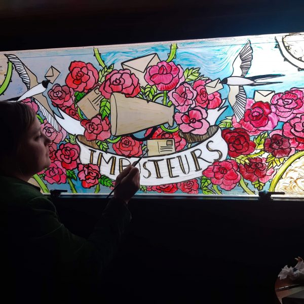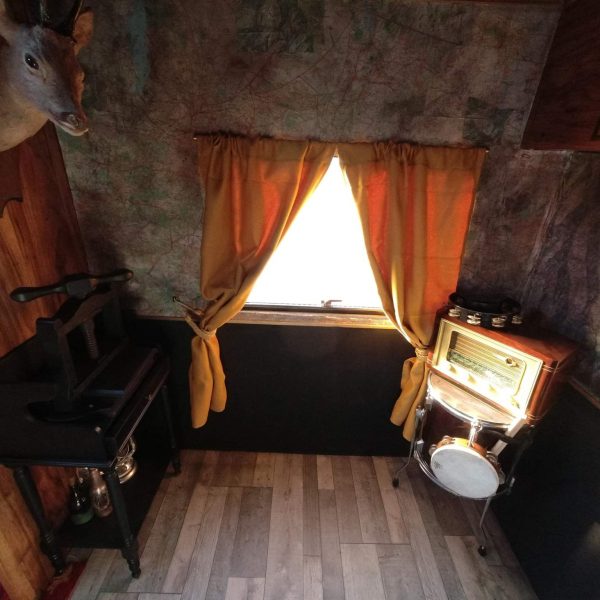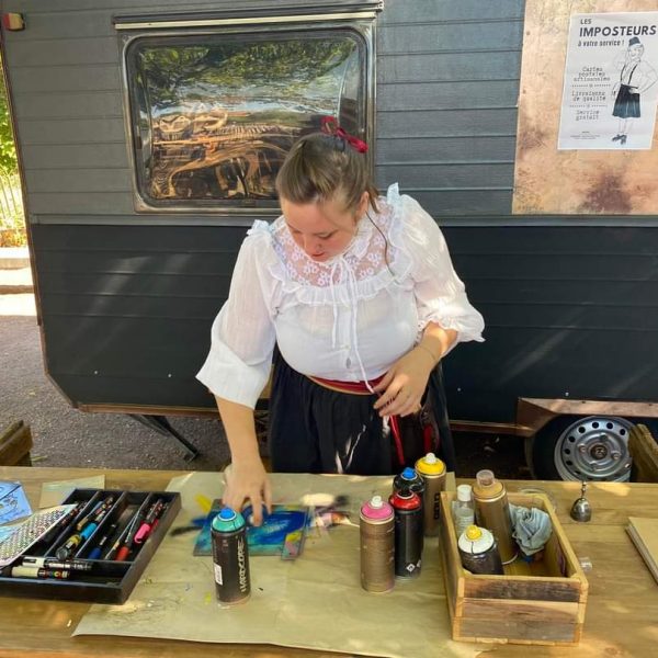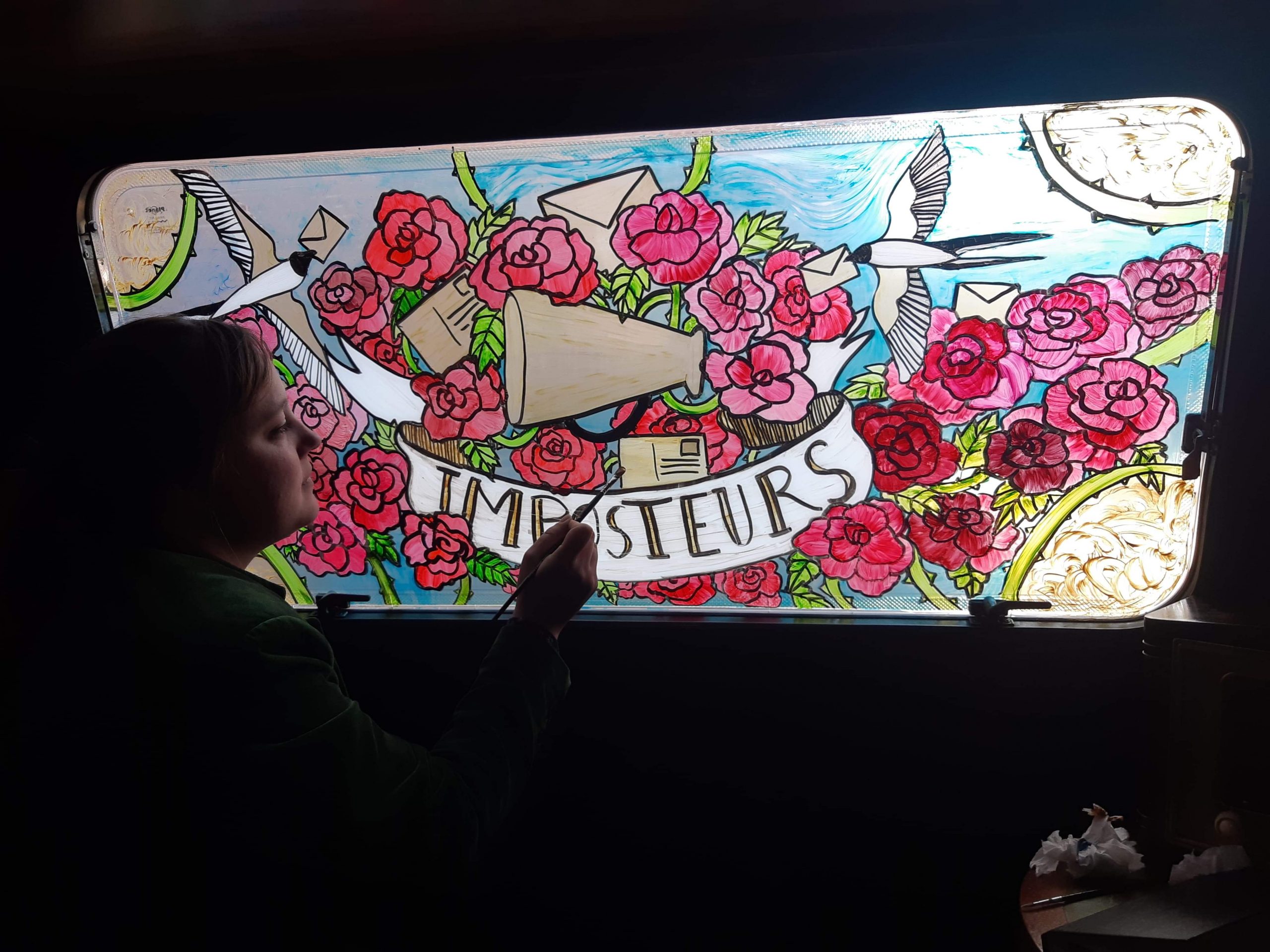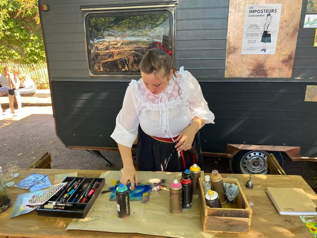 Scénographie du spectacle de rue « La Tournée des Imposteurs » et aménagement steampunk/vintage d’une caravane-atelier qui suit les comédien.nes sur le spectacle. Création d’une identité visuelle forte par la scénographie et le graphisme.
